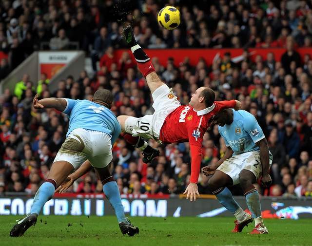 2011年2月的曼市德比,曼联2-1战胜曼城。第78分钟,纳尼传中,鲁尼腾空而起,倒挂金钩直挂死角,经典在瞬间定格。一年之后,英超官方的评选,鲁尼这个进球,被评为英超史上最伟大的进球。